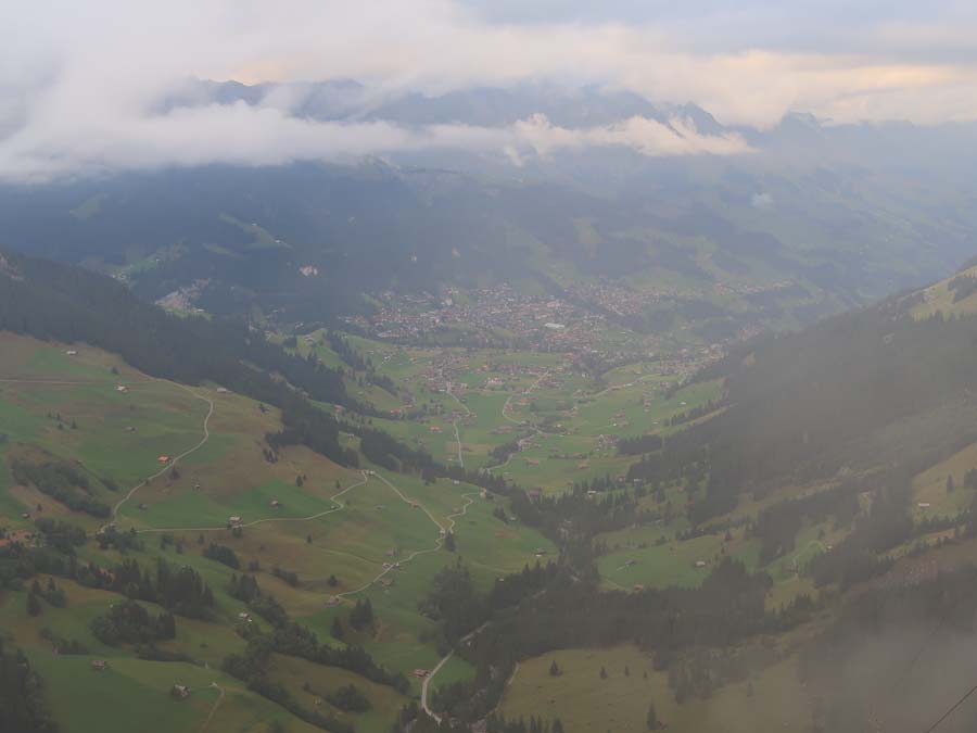 Im Tal erkennen wir das Traditions-Skidorf Adelboden (3.400 EW), von dem eine Gondel zur Engstligenalp hinauf führt.