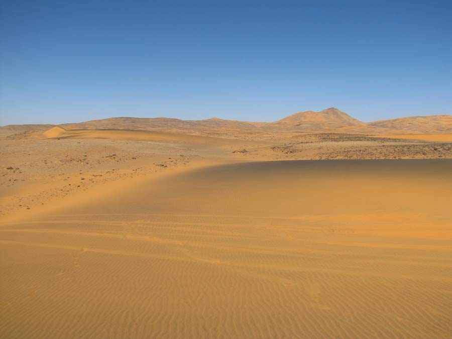 Wir erreichen unterwegs die Schwarzen Dünen und werden auf dem Rückweg hier übernachten und die höchste dieser Düne besteigen.