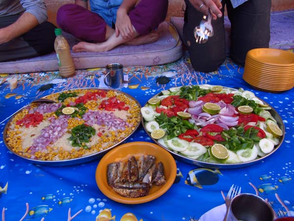 "Einzug der Kamele": abends treffen unsere Kameltreiber mit dreizehn Kamelen ein