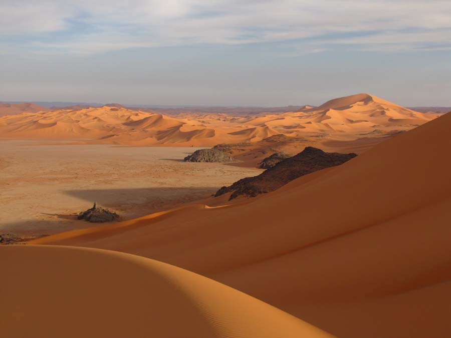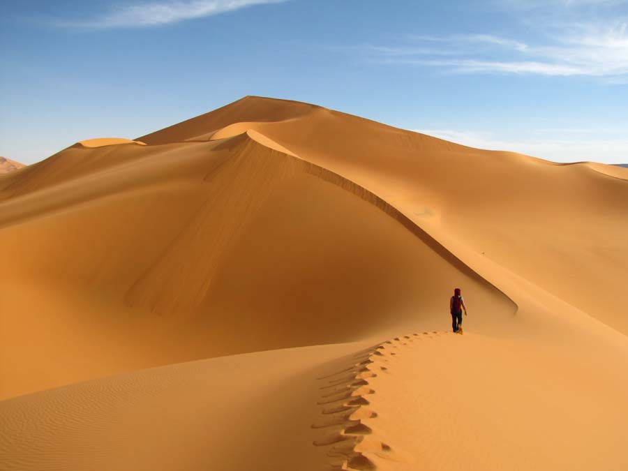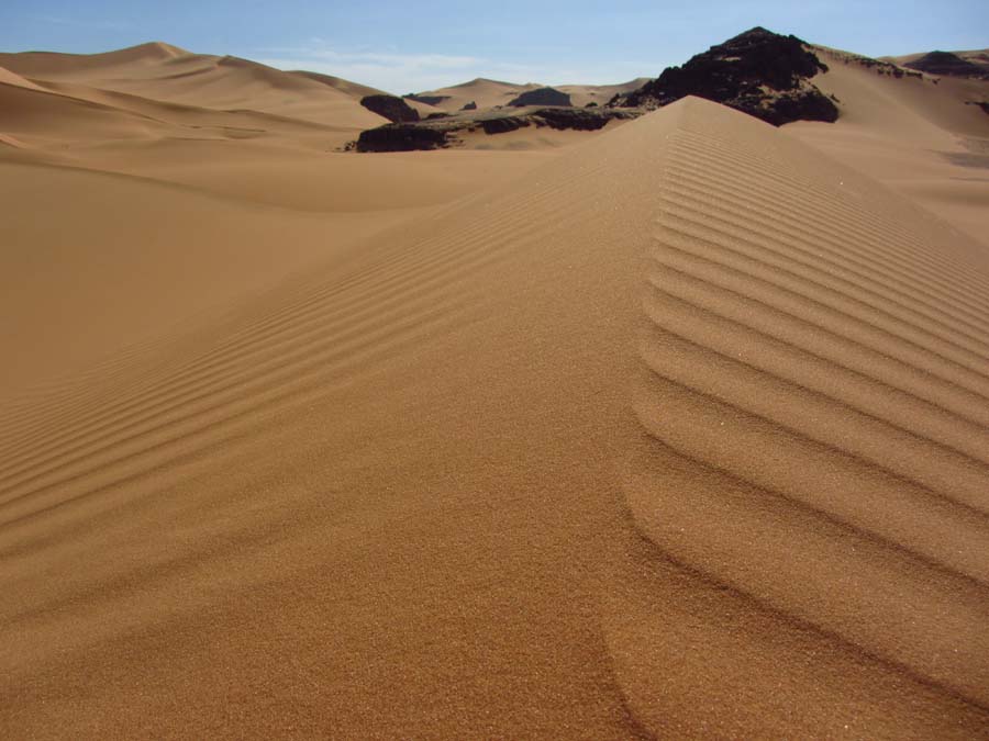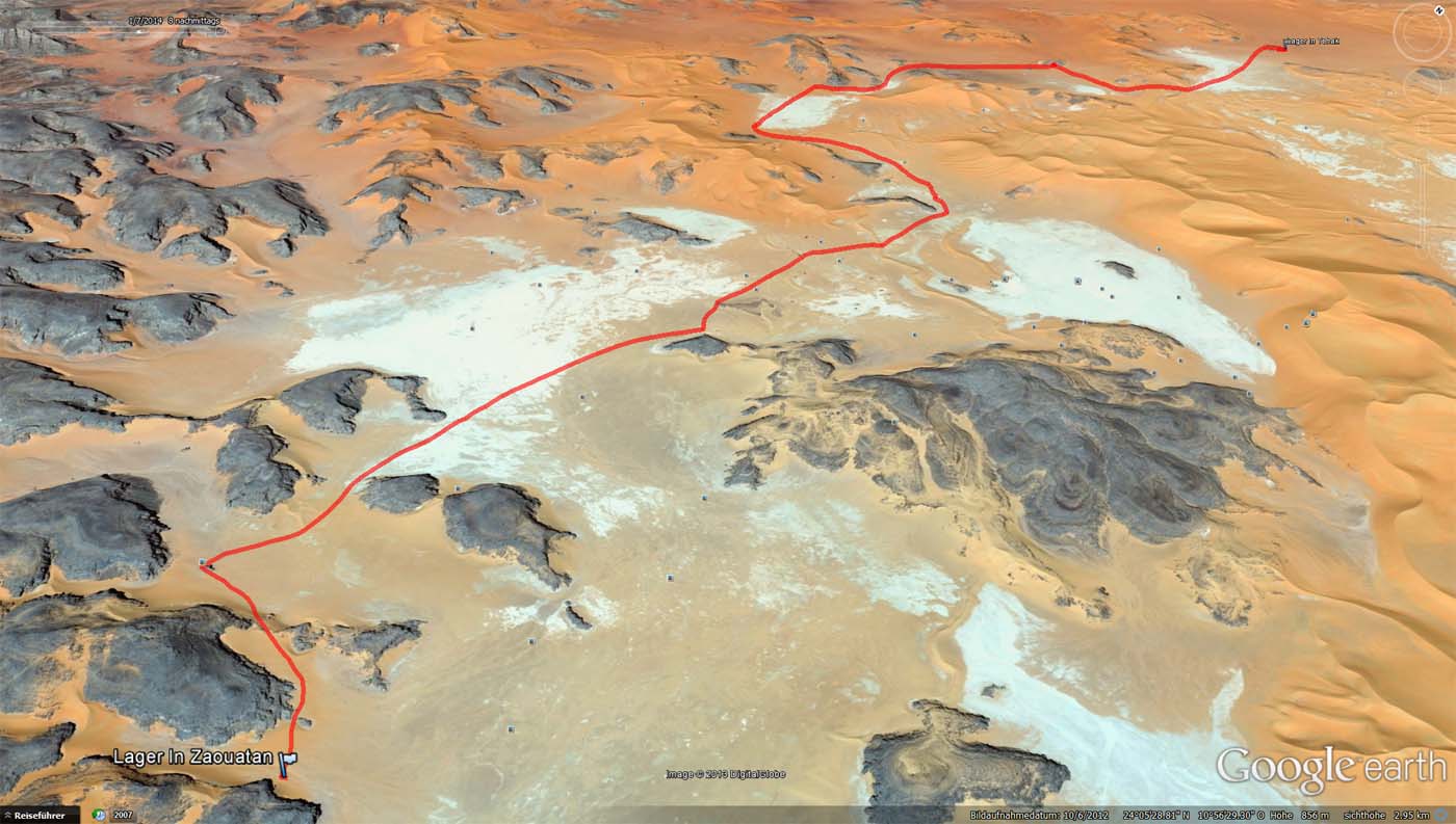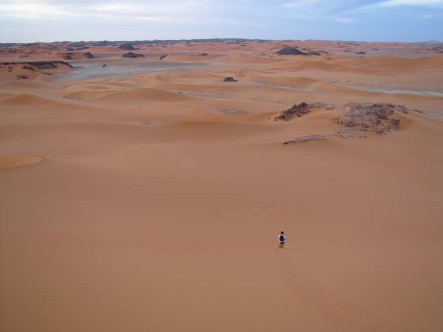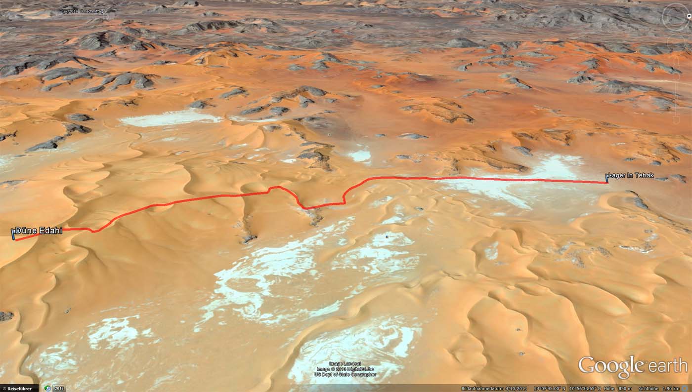 Mittig vor uns liegt also die Düne Edahi, wir überlegen uns schon jetzt den interessantesten Aufstiegsweg...