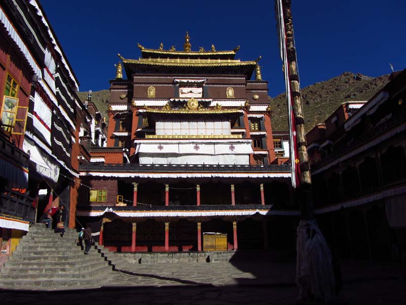 Spenden vom 10. Penchen Lama wieder erbaut. Am Tage der Einweihung 1989 verstarb der 10. Penchen Lama.