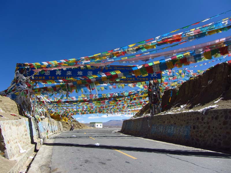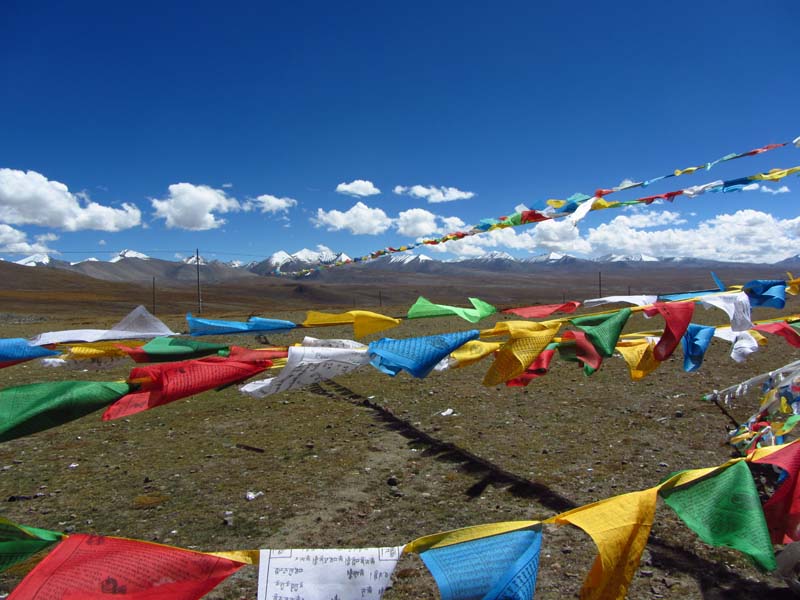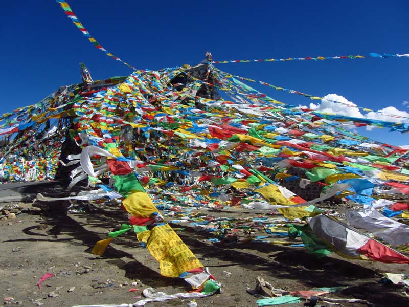 Wir bestaunen Tausende von Gebetsflaggen im Wind