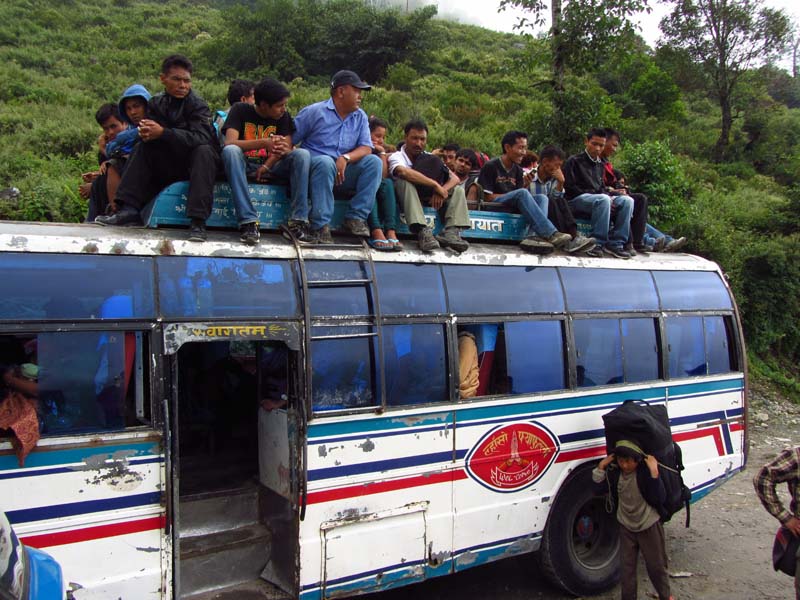 So kommt es wie es kommen musste: ab in den Localbus (immerhin waren wir drinnen, 40-50 Locals saßen auf dem Dach...)