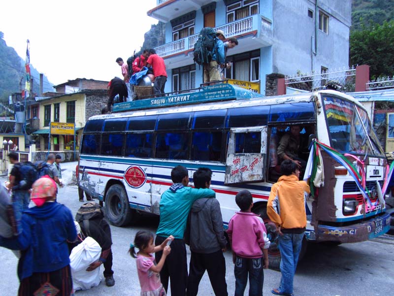 Für die 117 km nach Syaphrubesi benötigt man mit dem Localbus gut zehn Stunden, wir wollen das in sechs Stunden hinbekommen...