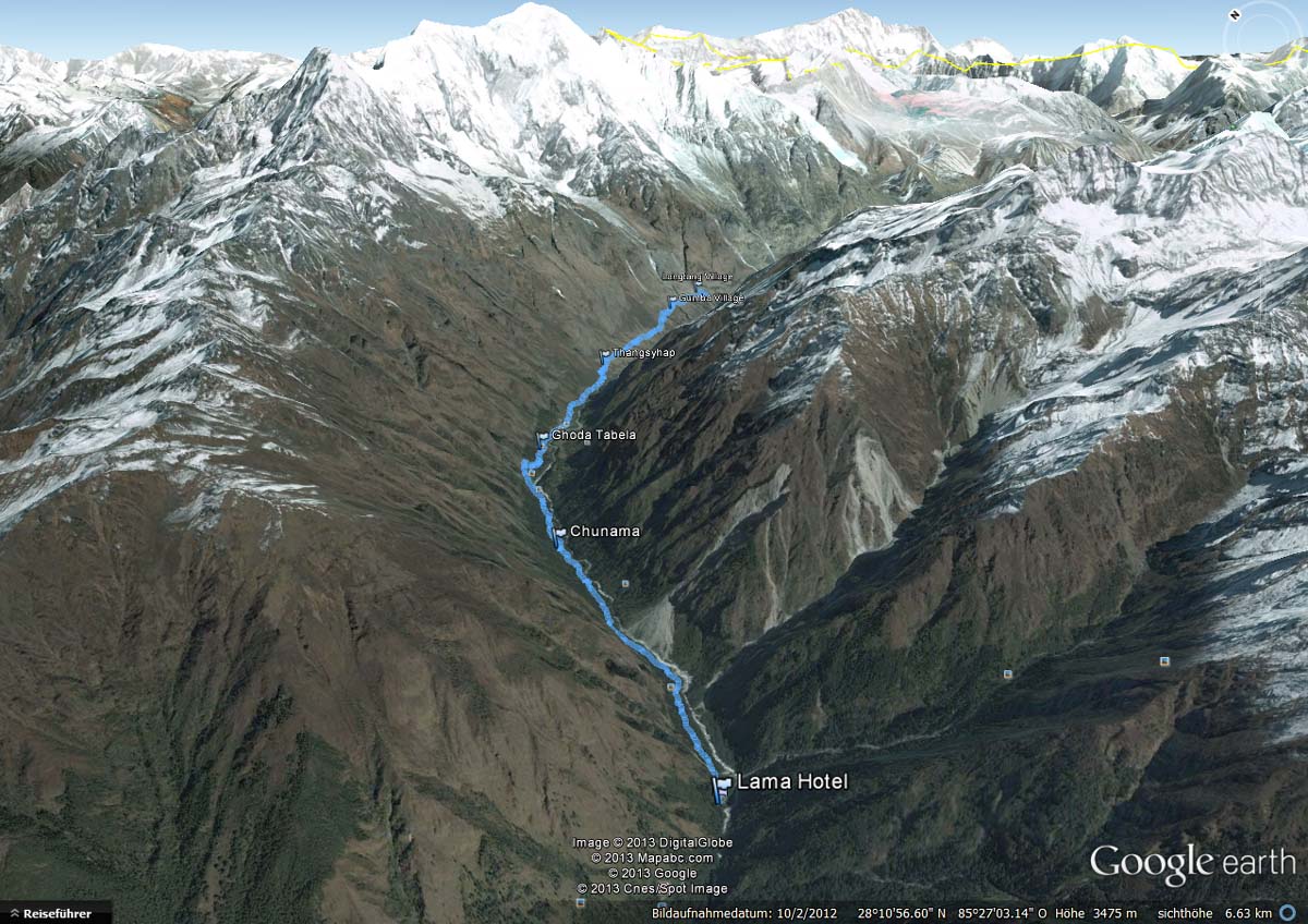 Lama Hotel=>Chunama 1:30h=>Ghoda Tabela 2:30h=>Thangsyhap 3:30h=>Gumba Village 4:15h=>Langtang 4:45h