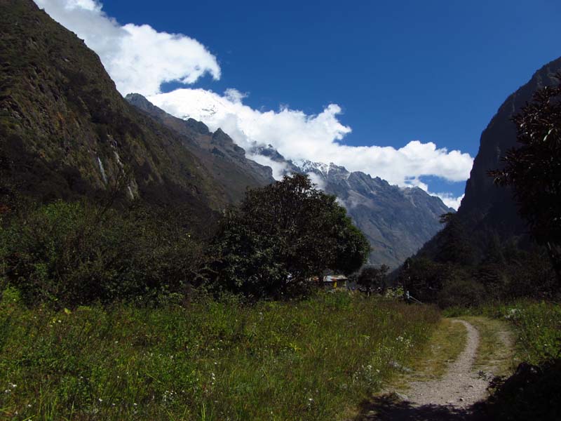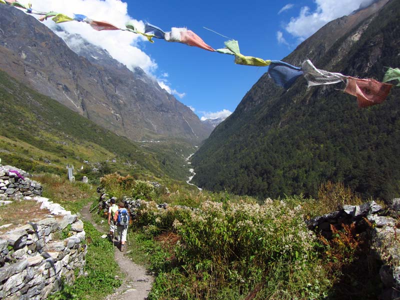 In schöner Landschaft können wir fast durchgehend den Langtang Lirung sehen