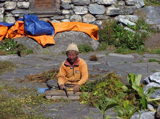 Wundversorgung bei einer Teepause in Gumba Village 3.402m