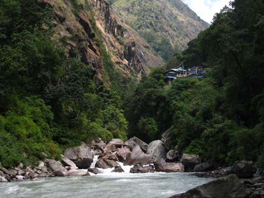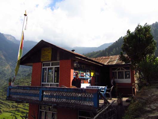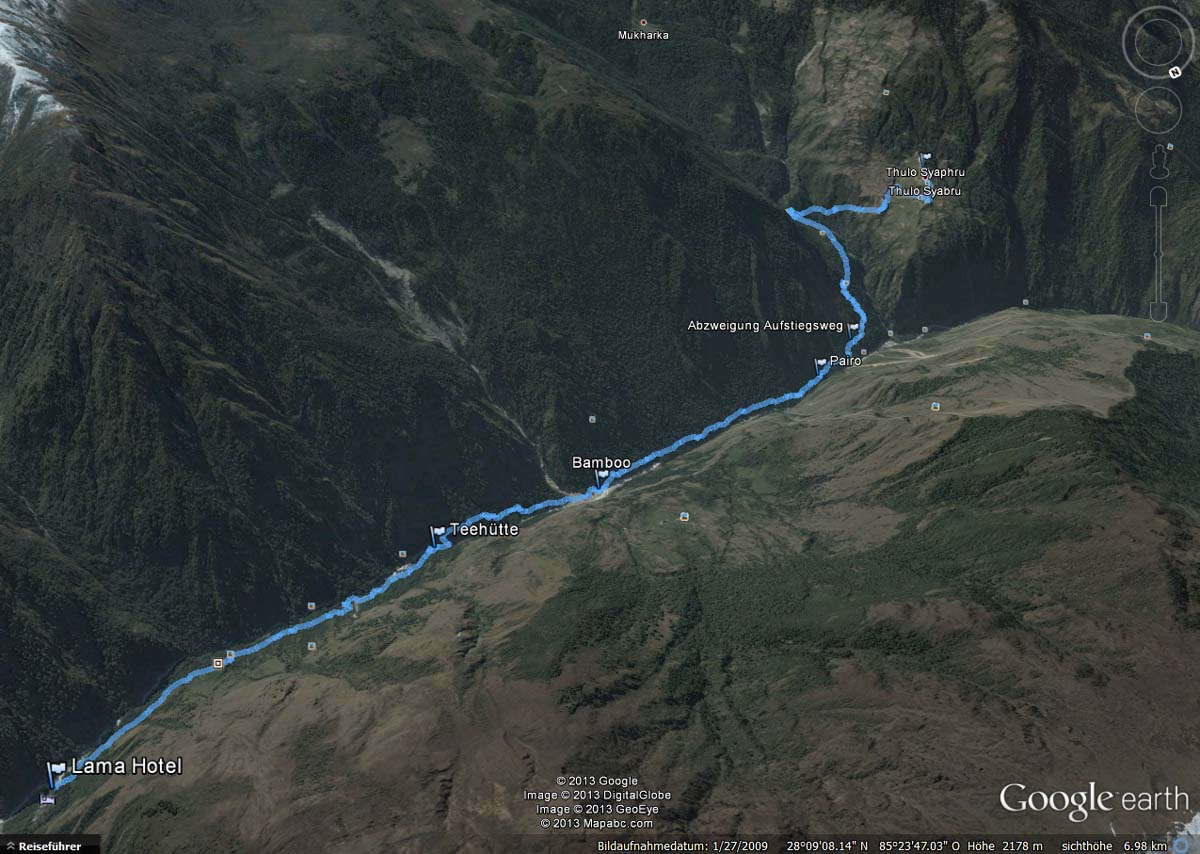Lama Hotel=>Teehütte 1:00h=>Bamboo 1:30h=>Pairo 2:15h=>Abzweigung 2:30h=>Thulo Syaphru 4:30h