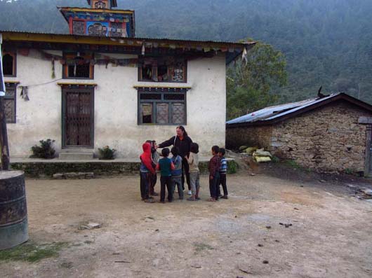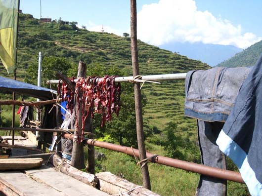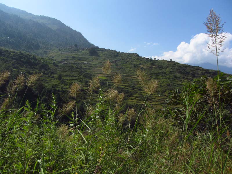 Heute steigen wir von Lama Hotel den Aufstiegsweg bis kurz nach Pairo ab (1.670m) und wandern im Auf und Ab weiter nach Thulo Syaphru 2.242m