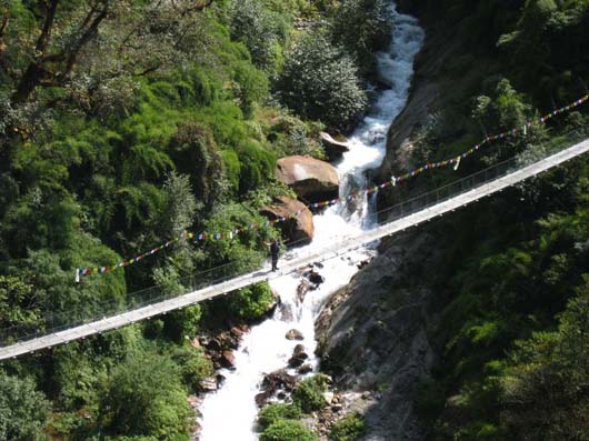 Erst geht es wieder runter zu einer langen und sehr hohen Hängebrücke