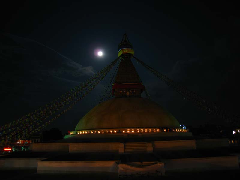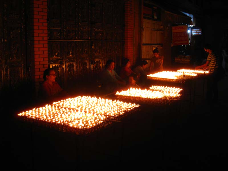 ... Um die Stupa werden zigtausende Butterlämpchen aufgestellt, die ihr die Form eines Mandala geben