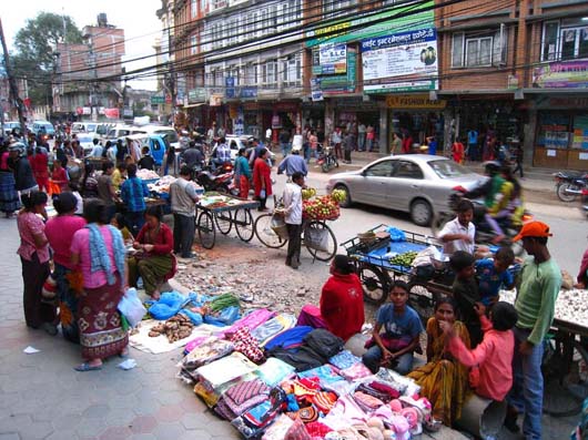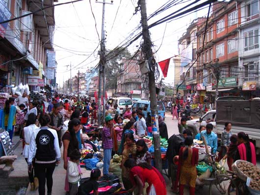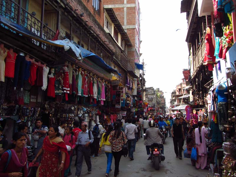 Typische Straßenszene aus Thamel. In diesem touristischen Stadtteil gibt es jede Menge Hotels und natürlich