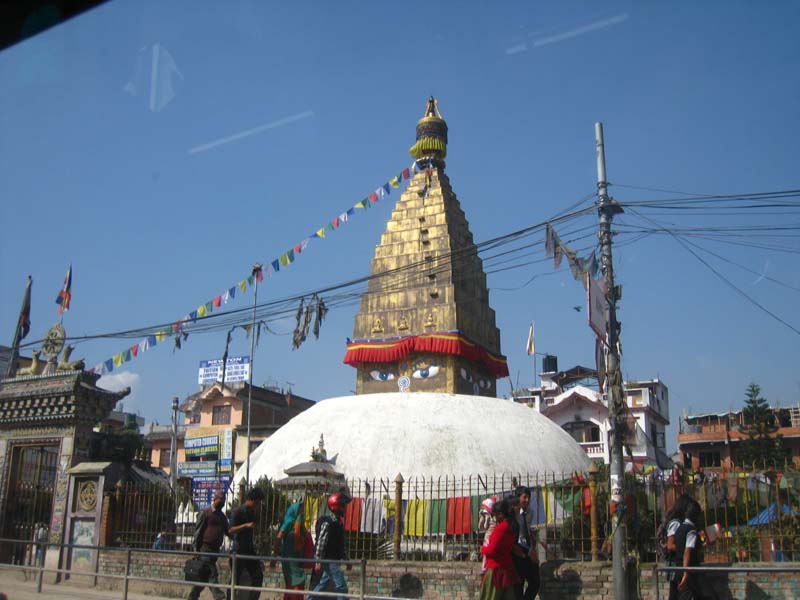 Wir fahren mit dem Taxi nach Thamel (Touristenviertel) und kommen an einer weiteren Stupa vorbei