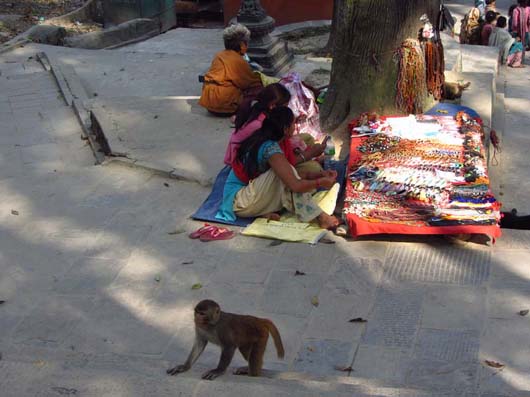 Im Bereich von Swayambhunath gibt es Hunderte frei lebender Affen